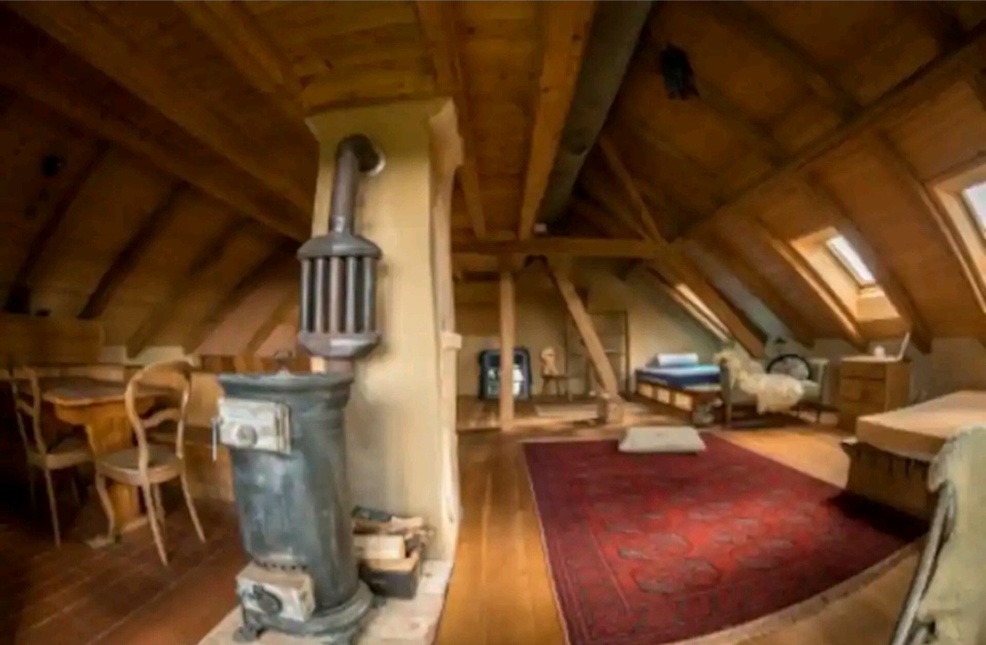 Die Dachgeschosswohnung bietet eine Explosion von Herzblut und Leidenschaft für Naturmaterialien. Eine Dusche aus Lehm, sehr viel Holz und Tiffany. Einfach ein Platz zum Wohlfühlen und Entspannen.